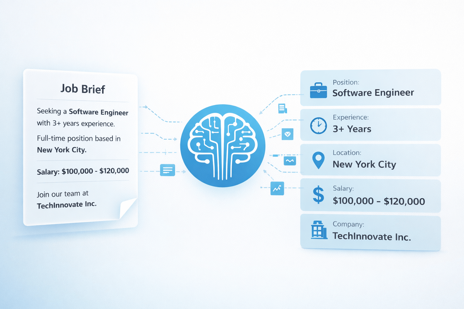 Paste any rough job brief and AI extracts role, requirements, salary, location and more automatically.